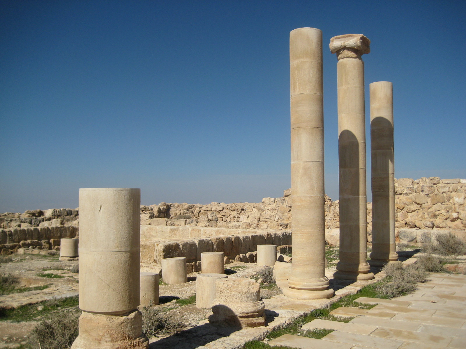 Oggi ci trasferiamo a Sud. Carichiamo armi e bagagli in pulmann e partiamo alla volta di Macheronte, attuale Mukawir, il palazzo di Erode che ha visto la danza dei Sette veli di Salomé e la conseguente decapitazione di Giovanni Battista. Per arrivare, il pulmann si inerpica per montagne desertiche, fino ad arrivare su una collinetta da cui i resti del palazzo sembrano lontanissimi. Da qui in avanti si va a piedi. Per la prima volta, eccetto tre minuti a Madaba, il pulmann non ci scarica direttamente davanti al sito, e questo mi mette particolarmente di buon umore: finalmente quattro passi per vedere con i miei occhi a 360° l’ambiente che mi circonda. Sembrerà strano, ma vedere il panorama attraverso un finestrino non è la stessa cosa: vedere il paesaggio e insieme camminarvi all’interno a mio parere fa vivere meglio i luoghi, piuttosto che guardare attraverso la mediazione di un vetro che permette la visione in una sola direzione. Ciò non toglie che il panorama finora visto dal finestrino sia splendido ed emozionante. È che camminare guardandosi intorno dà un qualcosa in più. La nostra salita verso il palazzo di Macheronte è abbastanza ripidi e per noi intorpiditi dalle scorse giornate di pulmann, arrivare in cima è una conquista. Del palazzo, un tempo protagonista di pagine del Vangelo oltre che, ovviamente, di pagine di storia, è rimasto poco, giusto il peristilio, ovvero il cortile interno circondato da colonne, e le terme, di cui però resta ben poco. Stimolata dalla presenza di coccetti sul terreno, e dato che, non dimentichiamolo, questo è un viaggio per appassionati – anche molto competenti, tra l’altro – l’archeologa si lancia in una lezione open air sulla ceramica romana: la ceramica è infatti importantissima per gli archeologi, perché è l’elemento in base al quale si datano gli strati, quindi le strutture, quindi intere fasi di vita di un edificio e di conseguenza di un sito archeologico. Quando ritorniamo al pulmann un giordano cu accoglie con una teiera e ci serve un buon té alla salvia e menta, un blend nuovo per me.