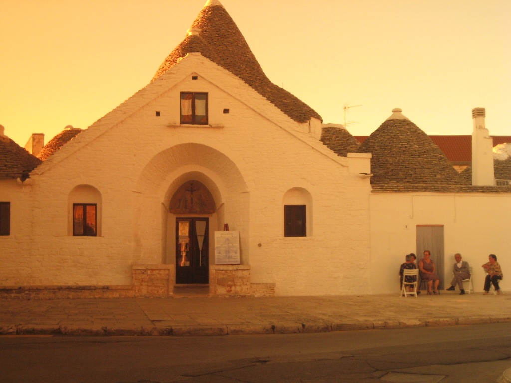 Partiamo alle 9 del mattino in macchina da Firenze. Arriviamo alle 17 circa ad Alberobello dopo aver attraversato l’Italia: A1 fino a Caserta Nord, poi Napoli-Pescara fino a Canosa, da qui fino a Bari e poi provinciale per Alberobello. È incredibile come ogni regione che attraversiamo nel tragitto abbia un paesaggio tutto suo che la contraddistingue…quello della Puglia ci accoglie con l’incanto di campi coltivati che si susseguono, di uliveti e di strane costruzioni in pietra a secco, ricoveri per gli attrezzi, forse, che man mano che ci avviciniamo alla nostra meta, tendono ad assomigliare sempre di più a trulli…