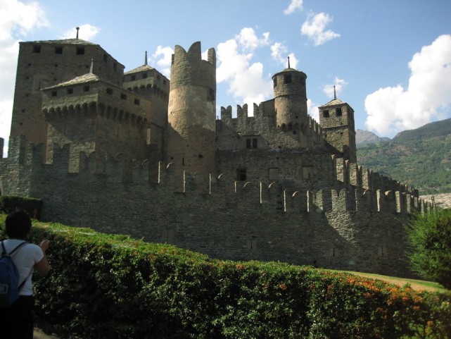 L’ultimo castello, prima di giungere ad Aosta, è il bel castello dei Signori di Quart, un agglomerato di più corpi di fabbrica dislocati all’interno di un recinto fortificato che segue l’andamento naturale di una impervia balza rocciosa. Bello a vedersi da valle, è posto in collina in posizione insieme di controllo e di difesa, come molti dei castelli valdostani.