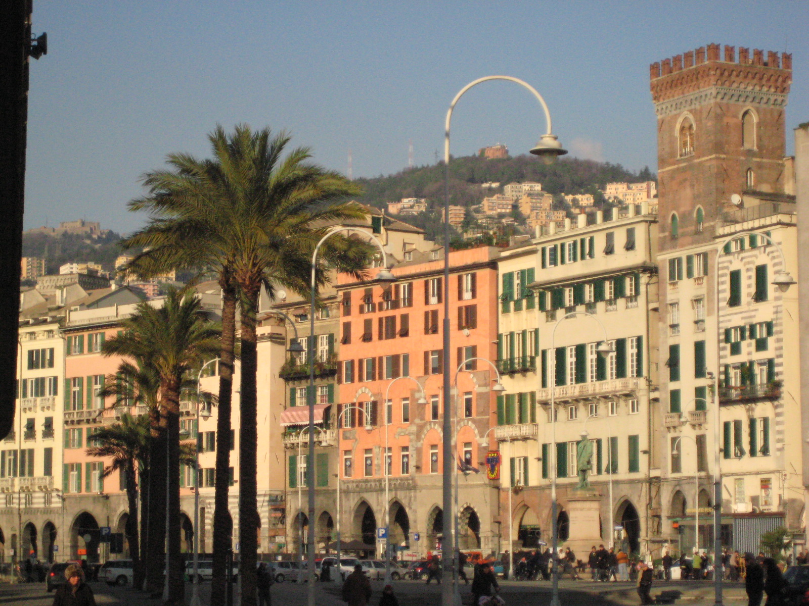 La prima parte dei portici di Sottoripa ospita banche, la seconda ospita bar e ristorantini; se la prima parte è poco trafficata, la seconda è un continuo via vai di gente, quasi da Suq arabo tanta è la confusione e tante sono le etnie con cui si può venire a contatto. Sembra quasi che l’antico porto sia ancora qui di fronte, attivo con i suoi scambi e le sue urla. Invece oggi qui, in piazza Caricamento, c’è il grande spazio del Porto Antico, realizzato in occasione del 1992, 500enario della scoperta dell’America, quando per le Colombiadi fu regalato al mondo intero l’acquario e tutta la banchina e lo spazio dei magazzini del cotone. Di antico qui è rimasto solo palazzo San Giorgio, che fu la sede originaria del Banco di San Giorgio, una delle prime forme di istituzione bancaria sviluppatasi nell’Italia dei Comuni. Nelle sue sale il palazzo ospita le statue dei donatori al Banco di San Giorgio a partire dal XV secolo. La parte medioevale venne ampliata di varie aggiunte, sino al blocco sul fronte del mare, affrescato da Lazzaro Tavarone nel 1610 con il San Giorgio in alto.
