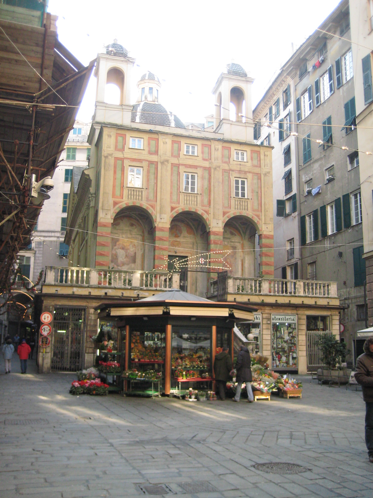 Da piazza Fossatello si prende via San Luca, da qui si procede sempre dritto, magari sbirciando dentro le porte aperte dei palazzi, per vedere i caratteristici androni e le scale decorate con colonnine. Su questo vicolo si affaccia la piccola chiesa di San Luca, che è in piedi addirittura dal 1188: se i suoi muri potessero parlare quante ne potrebbero raccontare! In fondo a via San Luca c’è Piazza Banchi sulla quale si apre la chiesa di San Pietro in Banchi, che ha in facciata un bel porticato, e la bella e spaziosa Loggia dei Mercanti, che oggi ospita mostre ed eventi. Sotto il manto stradale di piazza Banchi scavi archeologici fatti pochi anni fa hanno rivelato l’esistenza di alcuni palazzi più antichi, mostrando che la forma dell’attuale piazza e della topografia del quartiere un tempo era un po’ diversa.