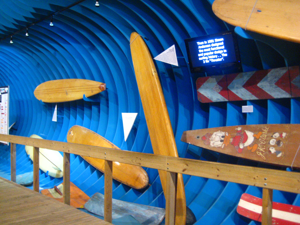 Chissà che mi aspettavo di vedere a Torquay: una località di mare, ristorantini di pesce e una passeggiata lungo la spiaggia? Oh no, non c’è niente di tutto ciò: una strada su cui si affacciano da un lato e dall’altro piccole casette prefabbricate indipendenti che costituiscono altrettanti negozi per il surf; la spiaggia è lontana, l’oceano non si vede, niente fa pensare di essere in un centro cittadino, tranne un McDonald e il Torquay Visitors Centre. Ci rechiamo qui: non siamo tipi da surf, siamo piuttosto tipi da museo. E infatti visitiamo il museo del Surf! Forse un po’ troppo costoso (10 aud sono effettivamente tanti…), questo simpatico museo fa piuttosto la storia di Bell’s Beach, la spiaggia che da quasi un secolo attrae surfisti da tutto il mondo (nonché quella dov’è girata la scena finale del film Point Break) e dei surfisti che di anno in anno hanno vinto l’annuale gara di surf, le tavole da surf vincitrici delle gare e una sezione che mostra l’evoluzione della tavola, da quella semplice in legno a quella ultra sofisticata, attuale in poliuretano e vetroresina. Si scopre così che il surf l’hanno inventato gli abitanti delle isole Samoa chissà quante migliaia di anni fa, ma è solo nel 1900 che si comincia a praticarlo in California e dopo pochi anni arriva in Australia. Da qui è un crescendo, e Bell’s Beach, e con essa Torquay, vede formarsi un turismo legato al surf, e la sua fama cresce anno dopo anno. Oggi però siamo ancora all’inizio della primavera, fa freddo e la giornata non invoglia certo a scendere in acqua. C’è poca gente, infatti, e se non vogliamo saltare il pranzo, l’unico posto aperto sembra essere il McDonald. Qui due vecchine di 80 anni che a stento riescono a camminare e che erano qui quando il surf è arrivato, si mangiano beate una fettona di torta, e mi strappano un sorriso.