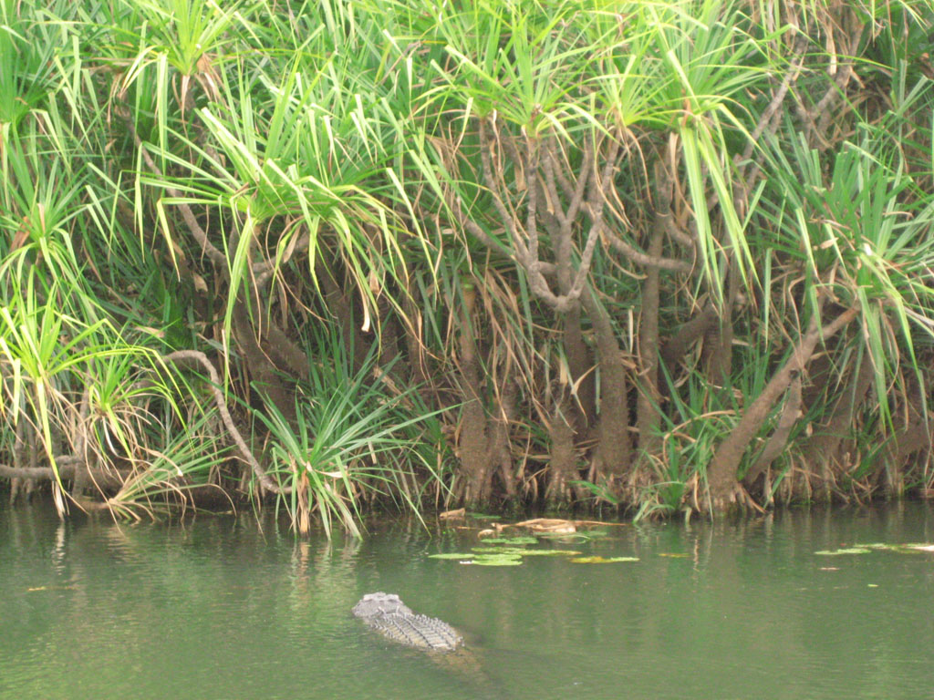 Dopo pranzo è la volta della tanto turistica quanto spettacolare crociera sul billabong delle Yellow Waters. Qui di nuovo la natura trionfa: tra coccodrilli, uccelli di ogni forma e dimensione, prati acquatici di ninfee in fiore e vegetazione lussureggiante c’è di che restare a bocca aperta. Il Kakadu è abitato da due tipi di coccodrilli: i temibili coccodrilli estuarini e i più piccoli freshwater. Sono questi che vivono, e che vediamo pigri e indolenti, nelle Yellow Waters. Vedere per la prima volta nella vita un coccodrillo libero in natura a poca distanza da te, che quando si immerge mette in mostra il suo dorso degno di un drago delle favole, fa un certo effetto. Ma, e non me ne voglia male il coccodrillo,m non è l’unica cosa per cui vale la pena fare questa gita in battello. Sono gli uccelli la vera meraviglia di questo posto: uccelli palustri, anatre siberiane in trasferta, rapaci e kokaburra sono i veri protagonisti del tour. Assistiamo al tentativo di un grosso uccello acquatico di mangiare, con scarso risultato, un gran pesce gatto che aveva arpionato col suo becco lungo e appuntito, ci divertiamo ad osservare un piccolo trampoliere che con eleganza cammina sulle foglie di ninfea, vediamo rapaci di vedetta sull’alto di rami spogli. Brava la guida, molto teatrale, che ci appassiona a quello che stiamo vedendo, che ci racconta che durante la stagione delle piogge prossima ventura, il livello dell’acqua salirà così tanto da allagare tutta l’area nel raggio di km, e che è possibile vederne i segni sui tronchi più alti degli alberi, cui restano appese alghe ed erbe palustri trasportate dalla corrente. Impressionante. Questo è un fenomeno naturale contro cui l’uomo non può, e non deve, fare nulla: è la natura che fa il suo corso, noi siamo solo spettatori.