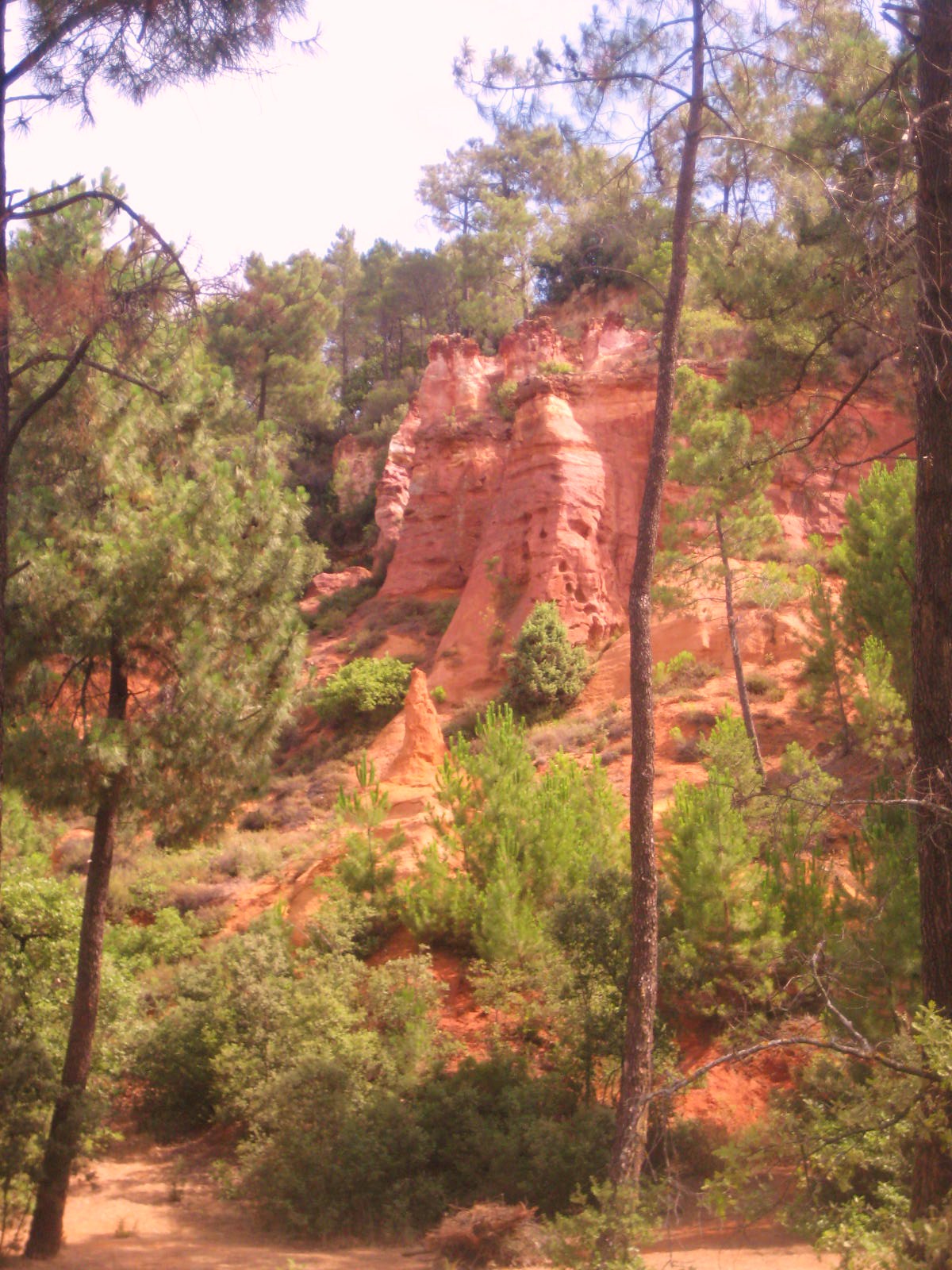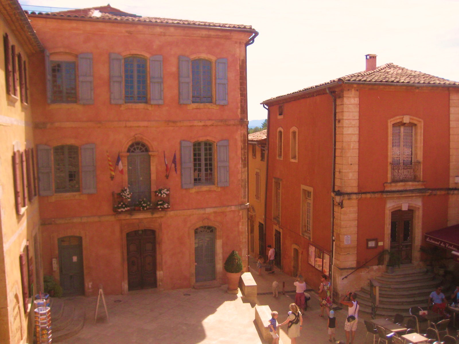 Il borgo di Roussillon offre dal canto suo la possibilità di una piacevole sosta per il pranzo o per uno spuntino: molto piccolo, arroccato sul suo rosso cucuzzolo di ocra, con gli edifici anch’essi rossi vuoi per il materiale da costruzione, vuoi per la polvere rossastra che inevitabilmente si solleva, è molto turistico, ricco pertanto di ristorantini e negozi di souvenir: un po’ snaturato, forse, ma ugualmente piacevole.