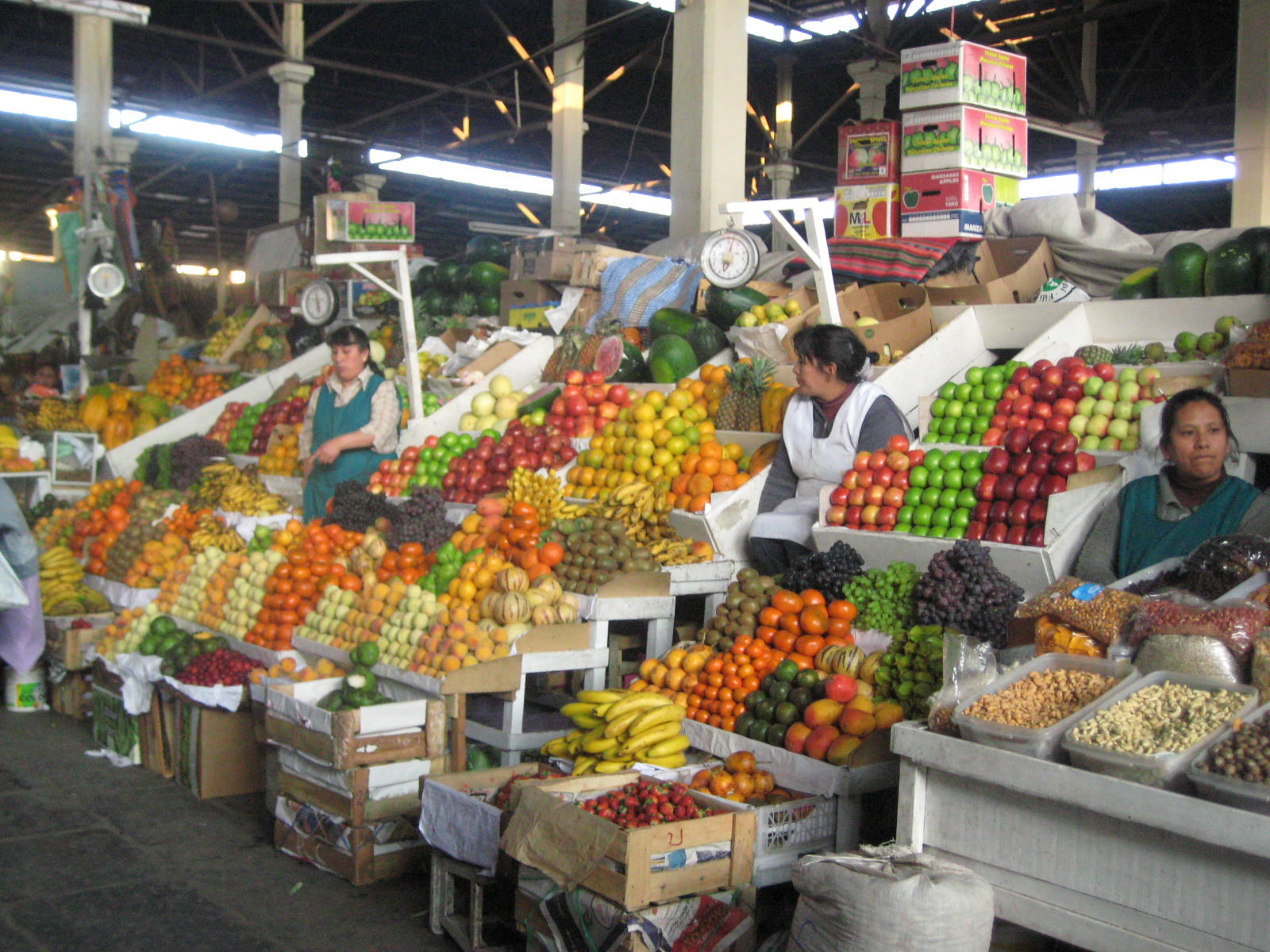 Il Mercado di San Pedro, a Cusco, è il grande mercato coperto cittadino. E’ enorme e incredibilmente poco frequentato dai turisti, per essere in centro, appena fuori dalla Porta di Santa Clara; al contrario è frequentato dagli abitanti di Cusco, che qui si recano per comprare verdura, frutta, carne, polli e uova, e quant’altro possa loro servire nella vita di tutti i giorni. E’ aperto tutti i giorni, tutto il giorno. C’è sì una parte di abbigliamento e di artigianato per turisti, ma la fanno da padrone i banchi tradizionali di frutta, verdura e alimentari in genere. I banchi della frutta sono variopinti e incredibilmente carichi di merce, quelli della carne non si preoccupano di mostrare tagli anche un po’ inconsueti…