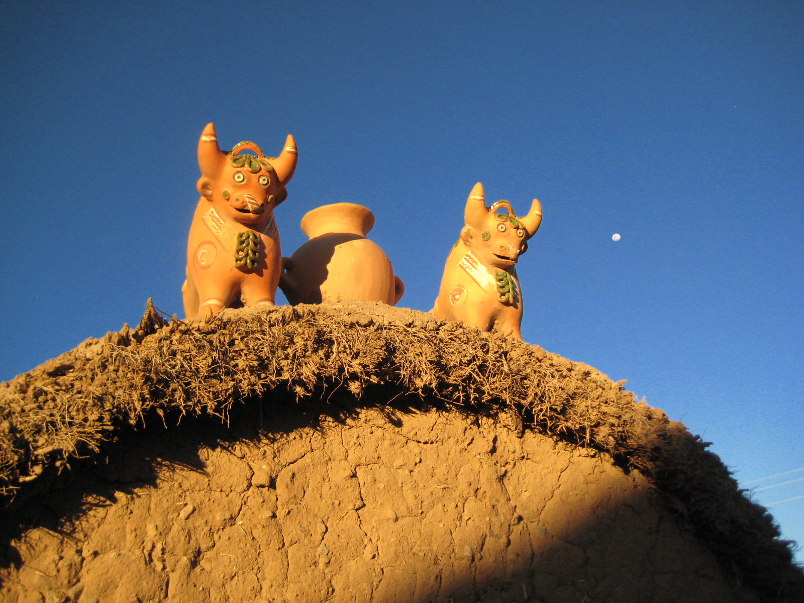 Di ritorno da questo luogo magico, il taxista ci chiede se vogliamo visitare una tipica casa di pastori che vivono da queste parti. Accettiamo e veniamo portati in una casa lungo la strada dove sembra che ci stiano aspettando (senza il sembra): sono in tre, padre madre e niño di appena un anno. È il capofamiglia che ci illustra la loro casa e la loro vita, a partire dalle loro abitudini alimentari: la quinoa, le papas, il queso, la macina a mano della quinoa per ottenere la farina, l’angolo cucina, all’aperto, alla brace. Ci viene poi mostrata l’abitazione vera e propria, una stanza con un giaciglio piuttosto duro, ci dice il nostro anfitrione. Ci porta poi sul retro dove ha un piccolo orticello dove ora sta zappando. Sul tetto campeggiano due toritos, due piccole statuette a forma di toro che hanno il compito di proteggere la famiglia e di augurare l’abbondanza, usanza tipica sulle Ande. A fine visita siamo invitati ad acquistare uno dei prodotti di artigianato realizzati con la lana dei loro alpaca che stanno qui fuori: è il prezzo da pagare per quest’“attrazione”.