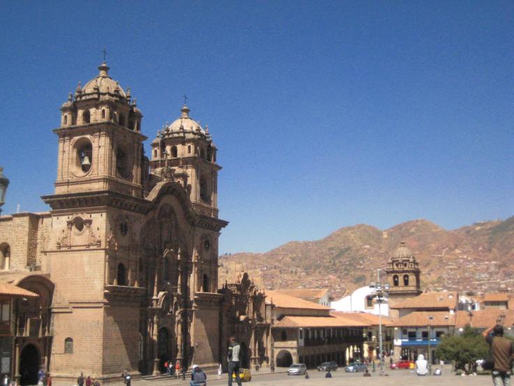 Alle 13.30 prendiamo parte ad un tour, riservatoci dal nostro rappresentante in hotel, Carlos, dedicato a Cusco e alle rovine inca vicine alla città. La visita comincia con la Cattedrale in Plaza de Armas. Molto bella, molto ricca, la cattedrale si fa notare per il trionfo dell’oro nei suoi altari barocchi, anzi rococò, per le statue di madonne e santi che occupano gli altari, sontuosamente vestiti, e per alcune opere pittoriche dell’Escuela Cusqueña in cui si nota la caratteristica principale di questa corrente pittorica: la riproposizione in termini “andini” di temi e iconografie europee; risalta per esempio una copia di un dipinto di Velasquez in cui i Reali di Spagna rendono omaggio alla Madonna, nel quale al posto dei cavalli sono stati dipinti dei lama; in un’Ultima Cena, invece, sulla tavola, oltre al pane e al vino sono presenti prodotti tipici della cucina locale: patate, frutta e soprattutto il cuy al horno. Una cappella è dedicata al Cristo de los temblores, dei terremoti, cui la popolazione è tuttora devota, dato che Cusco è in una zona sismica piuttosto attiva.