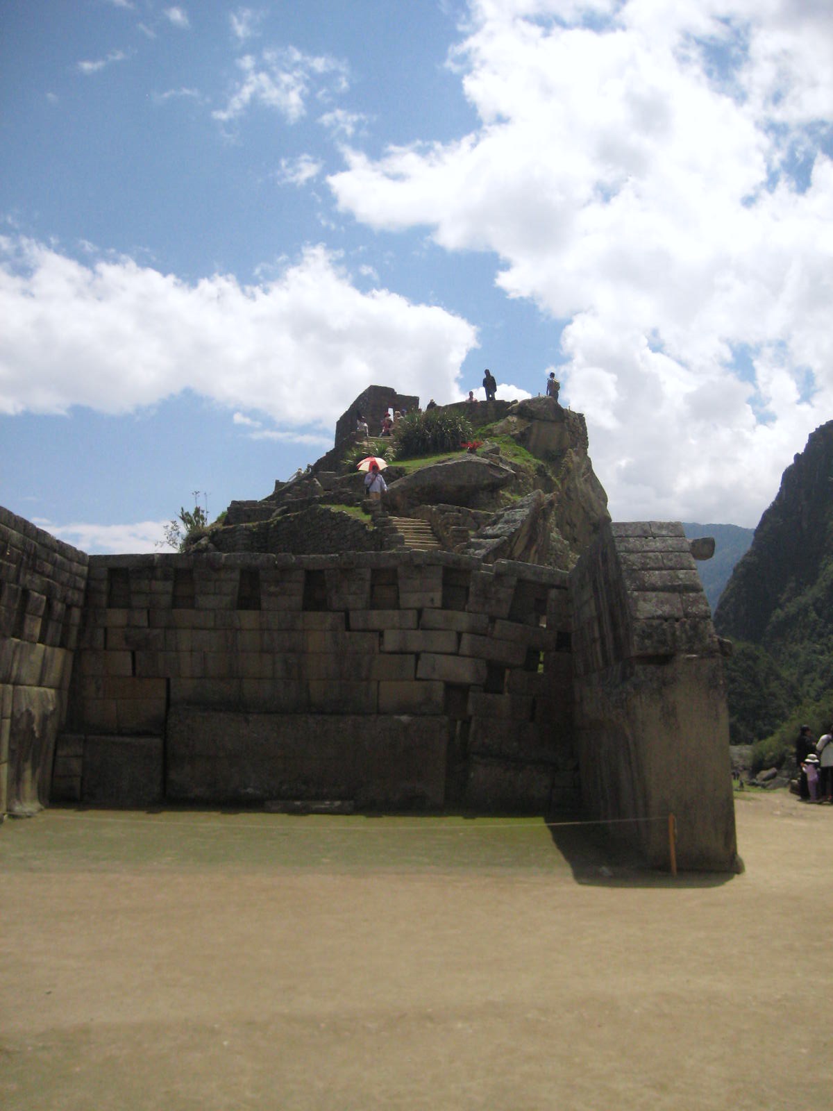 Di fronte, sul lato opposto della piazza sta la cd Casa del Gran Sacerdote, costruita nella tecnica muraria minore. All’esterno della piazza, un piccolo recinto circolare è interpretato come tempio della luna, o quantomeno come osservatorio celeste. Da qui si sale alla Piramide dell’Intiwatana.