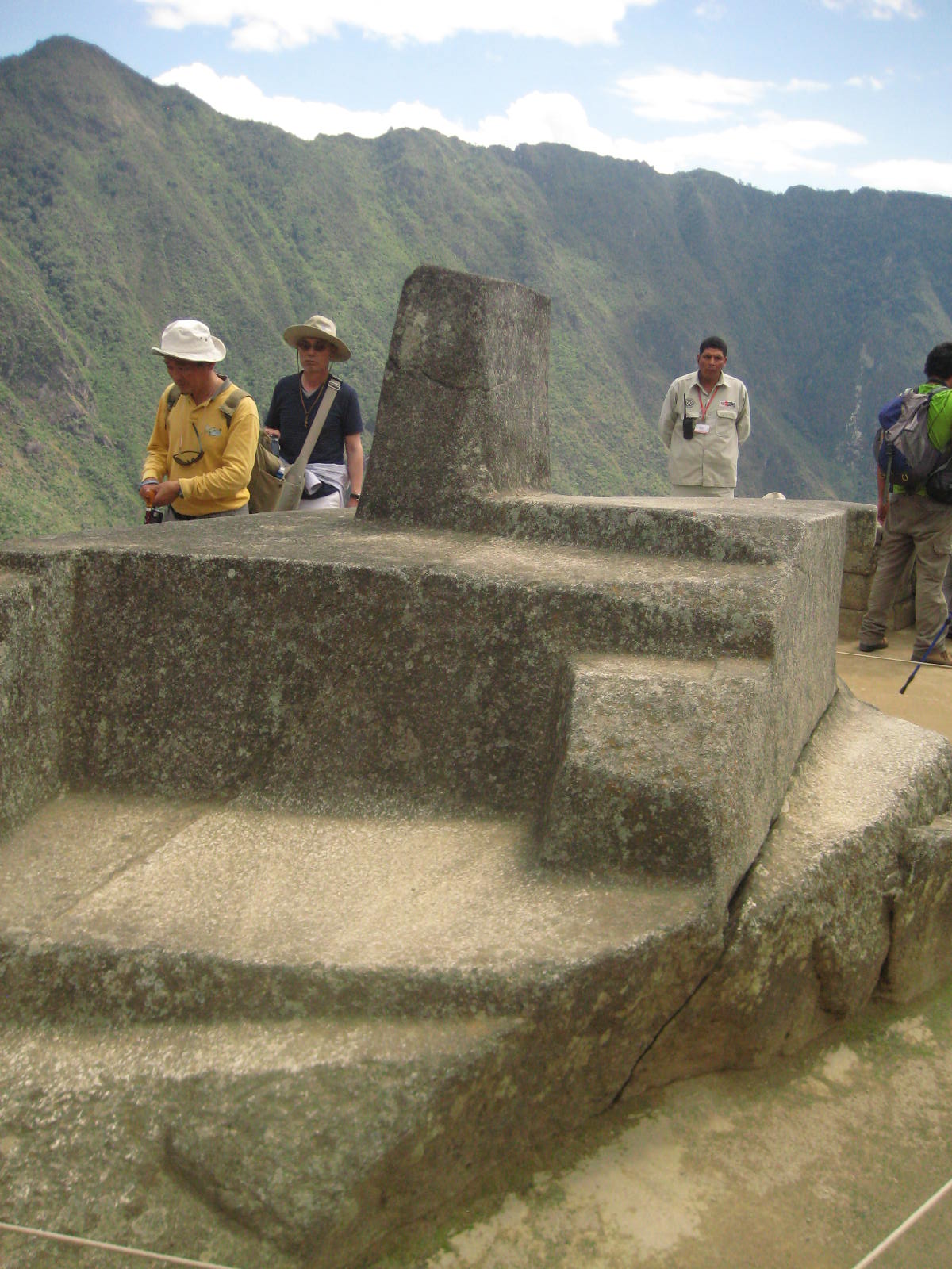 Questo è una sorta di altare con un piccolo obelisco che serviva nella misurazione dei solstizi d’inverno e d’estate. Lungo la salita c’è una chicca che vale la pena di segnalare: su una roccia è stata scolpita in miniatura la montagna di Huayna Picchu che in prospettiva compare alle spalle. Il percorso ridiscende ora, attraverso la grande piazza centrale per arrivare alle pendici di Huayna Picchu.