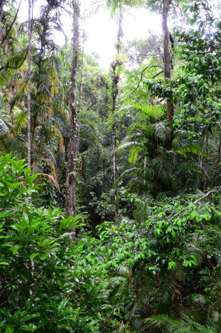 Il problema, però, può essere che, a camminare nel sottobosco, si è dal sottobosco sopraffatti: si passa sotto felci talmente grandi che sembrano palme (le felci a ombrello, come vengono chiamate), i tronchi degli eucalipti sono talmente larghi che bisogna fare il girotondo per passargli intorno, e soprattutto, gli uccelli vivono piuttosto in alto. Per la maggior parte si rischia di vedere radici, enormi immense immani radici: una visione piuttosto parziale e che, per quanto dia la giusta misura della foresta, non permette di coglierne appieno la biodiversità e la sua bellezza.