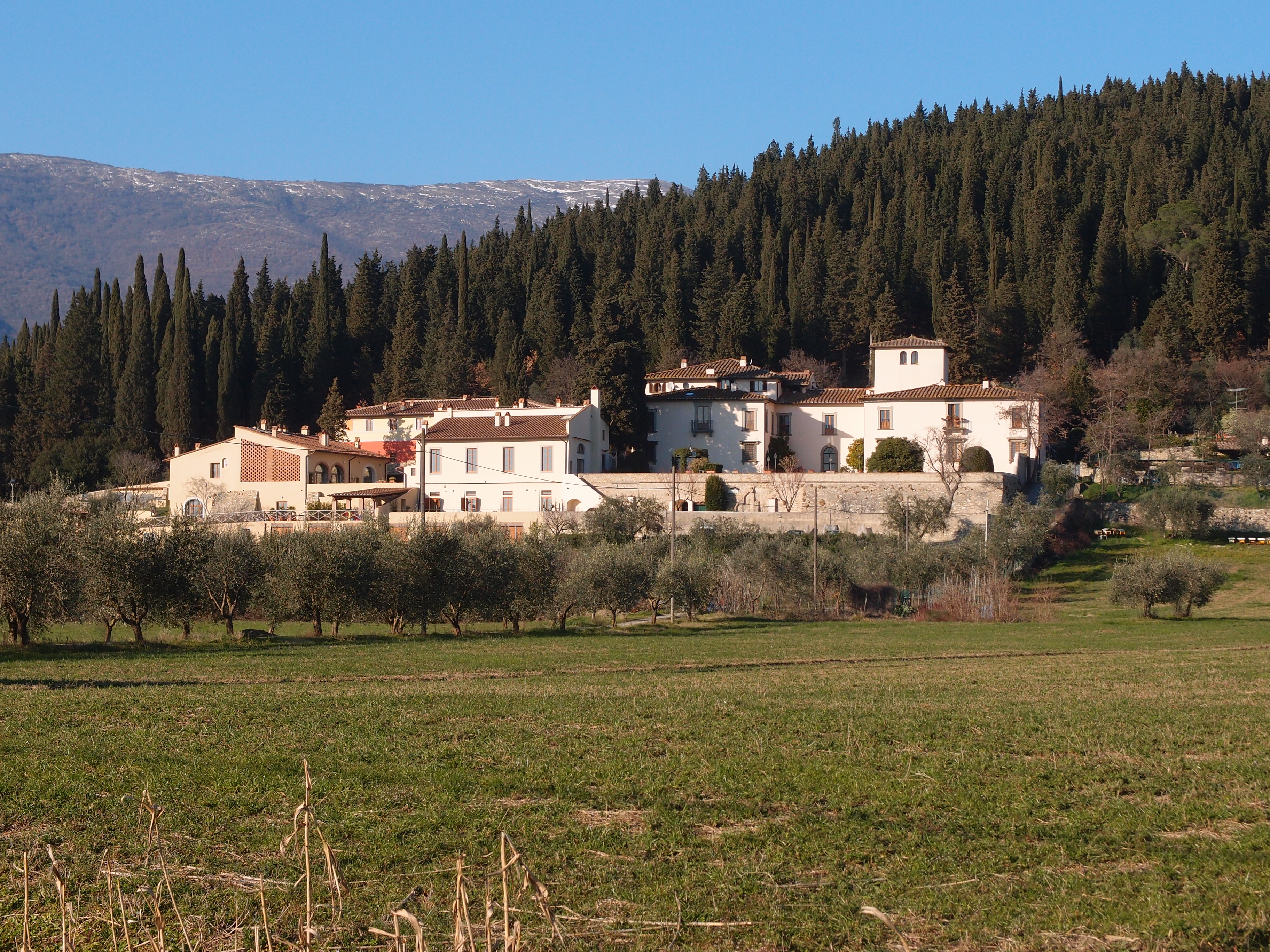 La passeggiata è lunga, costeggia olivi e prati, passa davanti alla villa di Travalle, una tenuta di proprietà della famiglia Strozzi che fece costruire un grandioso complesso a vocazione agricola – di cui rimane funzionante la fattoria, mentre la villa è visitabile su prenotazione telefonica – nel XVII secolo. Da fuori non si percepisce esattamente l’architettura, che è racchiusa da alte mura, ma certo merita il giardino all’Italiana… chissà che prima o poi non torneremo per visitarlo!
