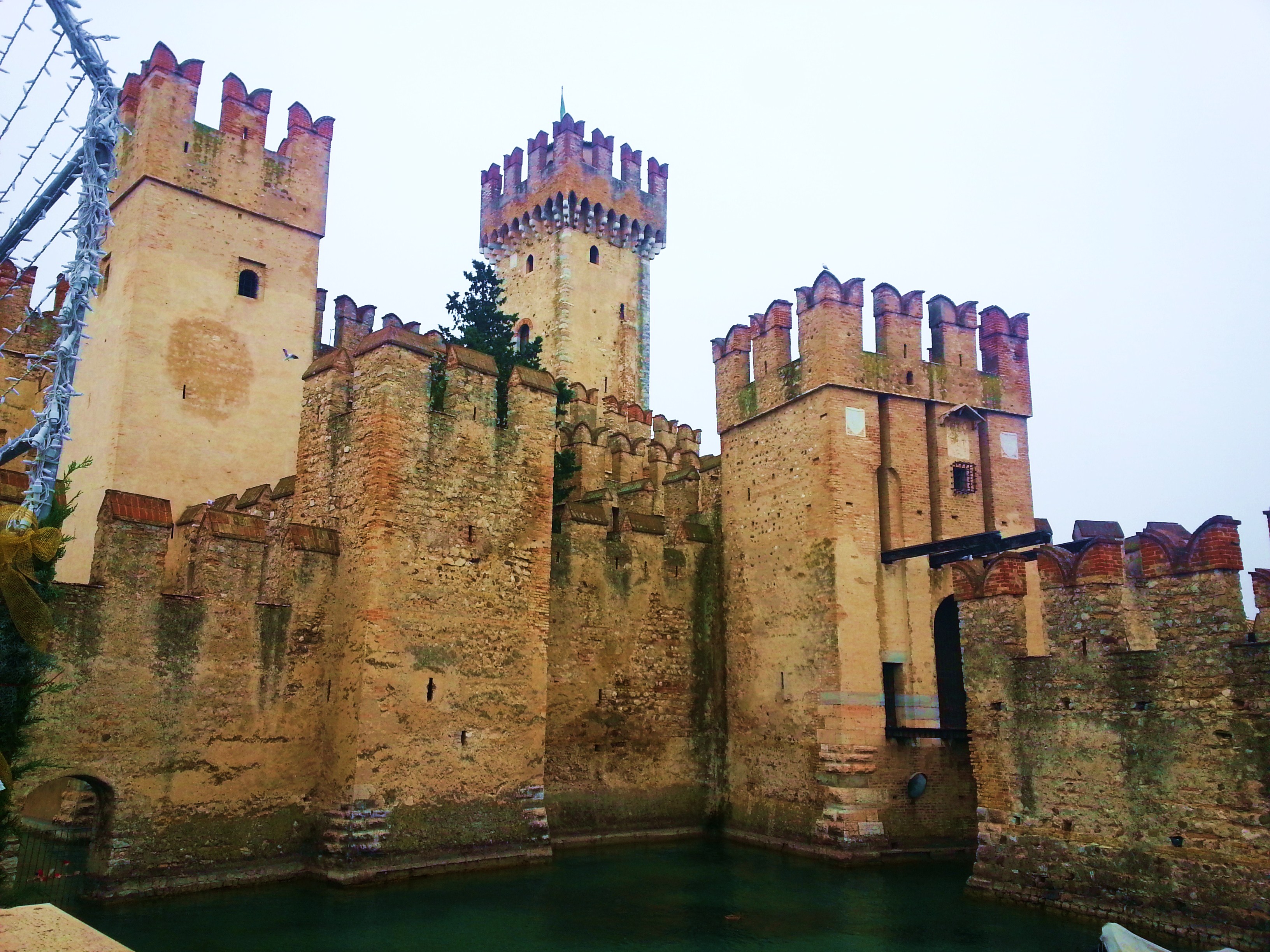 Lasciamo Peschiera un po’ perplessi, tutto sommato: non immaginavamo, per quanto questa non sia la stagione adatta, di trovare un tale mortorio. Per fortuna le cose cambiano quando arriviamo a Sirmione. Sirmione, sulla sua penisola, è davvero una chicca: innanzitutto ti accoglie con il suo castello scaligero, costruito nel XIII secolo, affacciato sul lago e con due ponti levatoi, una vera e propria rocca di difesa del borgo. All’interno le sue viuzze ben curate sono percorse da qualche persona in più rispetto a Peschiera.