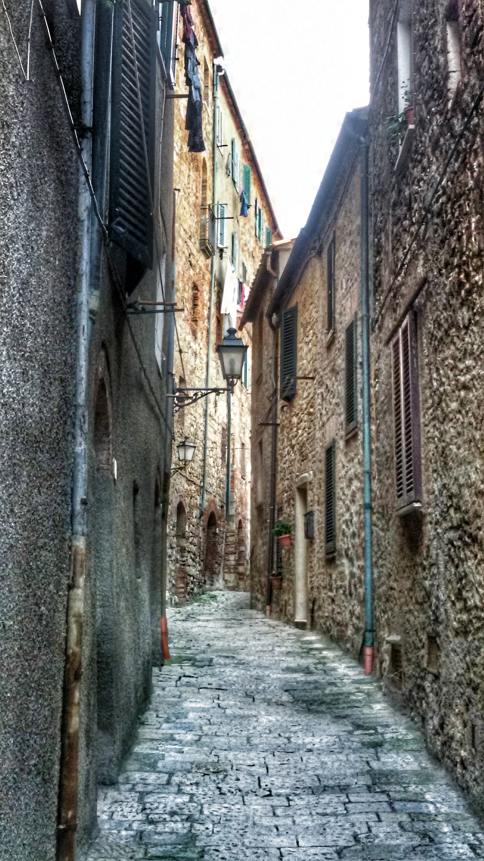 È a Chiusdino che andiamo nel pomeriggio: borgo medievale come tanti altri della Toscana, è molto legata al culto di San Galgano, del quale si conserva la casa natale, trasformata in cappella di culto, mentre una statua di culto è conservata nell’attigua chiesa di San Sebastiano, e mostra il santo inginocchiato a pregare davanti alla spada nella roccia. Chiusdino regala dei begli scorci sui vicoli medievali, e da qui si domina un panorama sulla vallata circostante che riempie veramente gli occhi di verde, di aria, di bello.