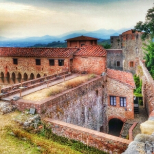 La rocca racconta tutto lo svolgersi della storia del borgo. È quasi interamente visitabile, e in essa si percorrono i secoli che dal Medioevo arrivano al Rinascimento e fino ai primi del Novecento. Il primo nucleo è costituito da 3 torri, due a pianta quadrata e una semicircolare più grande, la Rocca del Cerruglio, che si sviluppava su 5 piani, uno dei quali ancora oggi ospita un bel camino, ancora denso di fuliggine: immagino la dura vita degli armigeri, chiusi qui dentro, ma con l’occhio sempre volto al contado, a intravvedere i segnali di un qualche esercito nemico in arrivo. L’intera struttura aveva un impianto all’incirca triangolare.