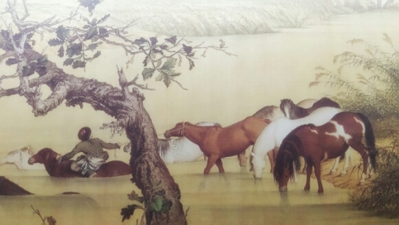 Va in Cina, dunque, terra di antica e millenaria cultura, con un apparato civile, artistico e, non ultimo, religioso ben strutturato, difficile da intaccare, figurarsi da scardinare. Ma non è quello l’interesse. I gesuiti vanno laddove i traffici commerciali e gli imperi coloniali dei grandi stati europei cattolici sono più sviluppati. La Cina è in accordi commerciali col Portogallo, ed è dal Portogallo che Castiglione parte. Sapeva già come comportarsi una volta giunto a Macao, l’emporio portoghese in Cina: il suo predecessore, Matteo Ricci, aveva capito che il modo migliore per operare, per evangelizzare il popolo cinese, era riuscire ad inserirsi nella società, senza urtare le usanze e i costumi tradizionali, e cercando dei punti di contatto tra gli insegnamenti di Confucio e quelli di Cristo. Castiglione però fa qualcosa in più, o di diverso: la sua fama di bravo pittore lo precede, tanto che al suo arrivo l’Imperatore lo vuole a Pechino. E lui non dice certo di no: posizione privilegiatissima per poter operare. Impara il Cinese, addirittura assume un nome cinese: Lang Shining. E siccome deve dipingere per l’imperatore, impara a conoscere l’arte cinese, le sue tecniche, i supporti per disegni e dipinti, i soggetti pittorici. Così, opera dopo opera, anno dopo anno, riesce a creare uno stile tutto suo, che è una sintesi di temi e materie cinesi e tecniche e sensibilità artistiche occidentali. Il risultato piace tantissimo all’Imperatore e ai suoi due successori, l’ultimo dei quali lo nomina Mandarino, carica di corte importante che contrasta certo con la missione del gesuita, ma che dimostra quanto Castiglione si sia integrato, anno dopo anno, con la cultura e la società cinese.