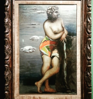 Si arriva poi alla sezione dei collezionisti privati, ovvero di cittadini di Firenze che in casa espongono opere di artisti eccellenti del Primo Novecento. Tra le varie opere mi ha colpito Figura di donna in riva al mare di Giorgio de Chirico: è una continua citazione e commistione di elementi accostati senza un particolare equilibrio: il volto da Apollo del Belvedere si imposta su un busto femminile a seno scoperto; la figura indossa però degli improbabili calzoncini corti coloratissimi, e le gambe, incrociate, a guardarle bene sono più maschili che femminili. Che sia un ermafrodito? Sicuramente De Chirico qui gioca col concetto di doppio e guarda ai molteplici aspetti del reale senza dare una soluzione definitiva.