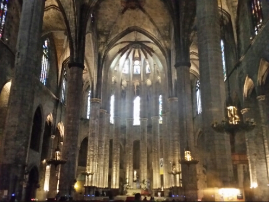 Proprio tornare a Santa Maria del Mar mi ha emozionato. Continuavo a dire “Lo vedi quanto è bella?“. E la è davvero. Un trionfo del Gotico costruito con la devozione e con la forza di uomini che nulla possedevano se non le proprie spalle e la propria fede, per trasportare le pietre dal Montjuic, la montagna dietro Barcellona, così lontana così vicina. A questi trasportatori è reso il giusto omaggio sul portale della chiesa, e nel tanto bello quanto lungo romanzo “La cattedrale del mare” di ildefonso Falcones.