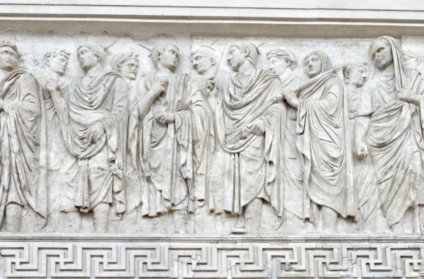 L’Ara Pacis non può non destare meraviglia. È un altare, ma la sua bellezza non sta tanto nell’ara vera e propria, quanto nel recinto: decorato su quattro lati su due livelli diversi, al di sotto una decorazione floreale, al di sopra quattro pannelli, due sul lato frontale e due sul lato di fondo, e una lunga processione sui lati.