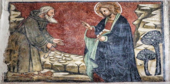 La scena del Diavolo tentatore rappresentato con zampe da rapace e il saio da francescano è una delle scene più bizzarre nella chiesa di Santo Stefano