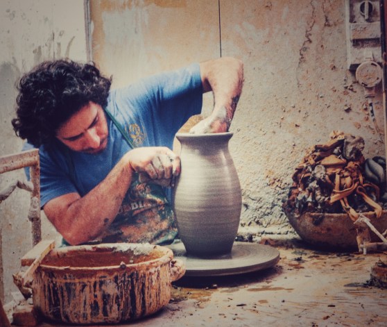 il vasaio Giuseppe Colì all’opera mentre realizza un vaso al tornio. Giuseppe è campione internazionale di ceramica al tornio