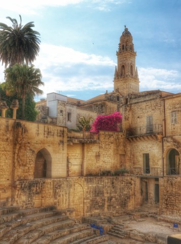 Il teatro romano di Lecce e il campanile del duomo sullo sfondo