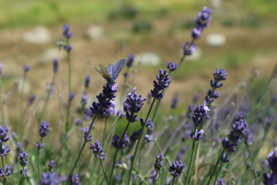 È un tripudio di fiori, non solo di lavanda, e di api e farfalle che ronzano e lavorano. Io le disturbo cercando di scattare foto a loro che si mettono in posa, in effetti, per favorirmi. È tutto molto bello.
