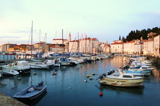 A proposito di Pirano, col senno di poi vi sconsiglio fortemente di fermarvi per una notte, soprattutto se viaggiate in macchina. Occorre infatti lasciare l’auto in un grande parcheggio a pagamento fuori dal centro, il che comporta una bella spesa se si vuole pernottare nel borgo. In ogni caso ormai è andata così e noi giungiamo a Pirano scortati da un bellissimo tramonto. Pirano mi piace subito tantissimo: al termine del lungomare di accesso, il borgo si apre con una piazza immensa su cui affacciano bei palazzi eleganti. Subito dietro di essi, invece, si sviluppa la ragnatela strettissima dei vicoletti che si snodano tra i palazzi antichi. Mi affascina tantissimo. Purtroppo però è notte, e non possiamo godere appieno della bellezza di questi angoli. Ma torneremo in un’altra occasione, in pieno giorno, per visitarla interamente.