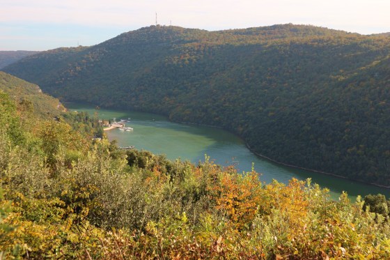 Rinfrancati nel corpo e nello spirito, ci rimettiamo in marcia: prossima destinazione Rovigno, che raggiungiamo via costa. Passiamo quindi da Orsera, piccolo borgo noto per le sue spiagge (anche naturiste) e per le isolette antistanti, quindi risaliamo la strada lungo il Limsky Kanal, una sorta di ampio fiordo sul quale ad un certo punto si apre una vista panoramica (ben individuabile dai baracchini di souvenir e prodotti tipici): il panorama è in effetti spettacolare, il fiume si insinua in una gola piuttosto stretta, verde per i boschi sulle montagne. Da qui a Rovigno ci separano pochi km.