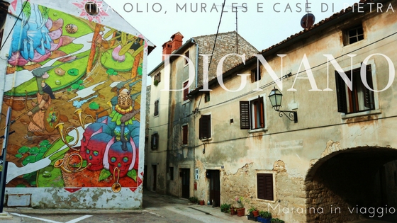 Dignano è un curioso mix di antico, forse meglio sarebbe dire di vecchio, e di ribelle. Così le fiancate di alcune case sono sgargianti per i colori degli streetartist, e contrastano con la casetta accanto, piccola, in pietra, poco meno che pericolante. Basta già solo questo per farmi innamorare.