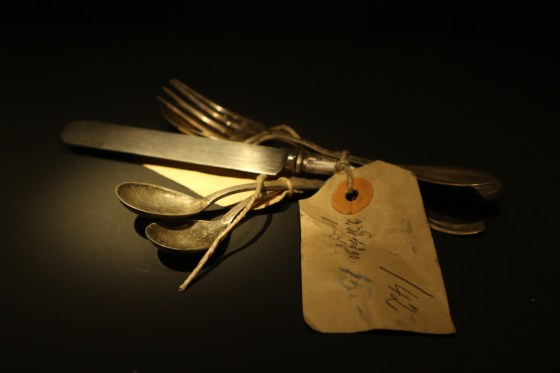 Posate appartenute a prigionieri passati dalla Risiera, esposti al Museo della Risiera di San Sabba