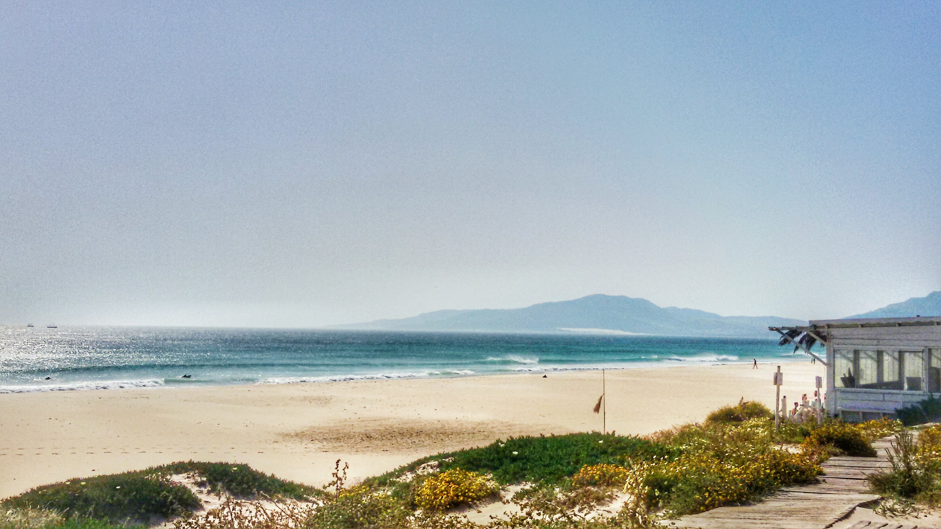Playa Tarifa, Los Lances, Valdevaqueros, Punta Paloma: 10 km di costa e di spiagge più o meno strette, più o meno frequentate dai surfisti. La carretera nacional N-340 scorre alle spalle, attraverso un paesaggio rurale fatto di campi, di pale eoliche, di piccoli villaggi. In corrispondenza di Punta Paloma la carretera si inoltra nell’entroterra, evitando il promontorio boscoso e carico di storia. Poi, una deviazione verso Bolonia ci fa fare per davvero un salto indietro nel tempo. Attraversiamo un paesaggio brullo e agreste, popolato da greggi di pecore e mandrie di vacche che pascolano quasi in cima alla strada. Quando arriviamo a Bolonia, una mucca pascola direttamente nell’aiuola della rotonda nel bel mezzo della strada.