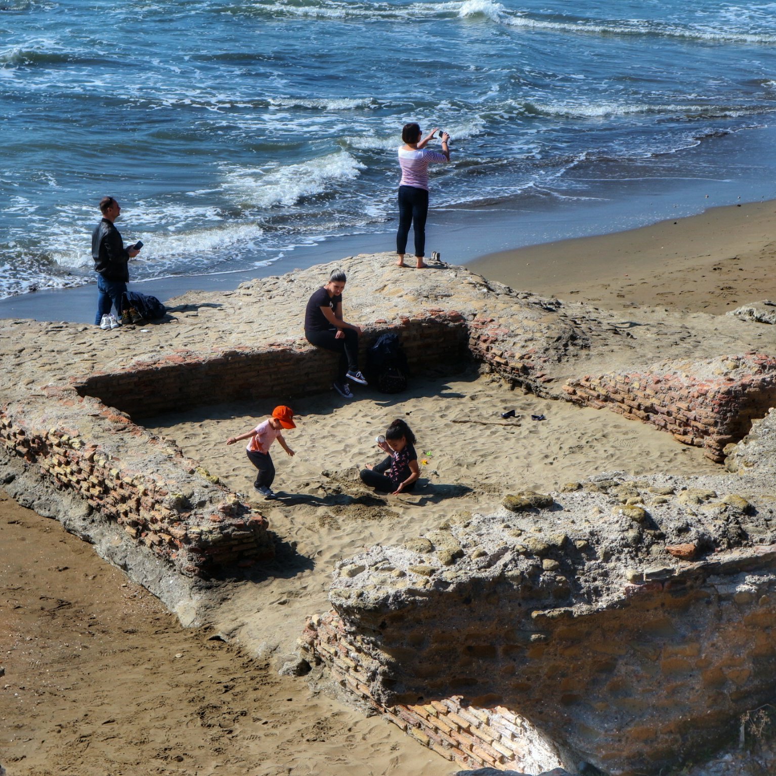 Le strutture della Villa arrivano praticamente in riva al mare in alcuni punti invadendo la spiaggia. Ma dove inizia la falesia di arenaria, la grande scogliera verticale, inizia anche la parte più monumentale.