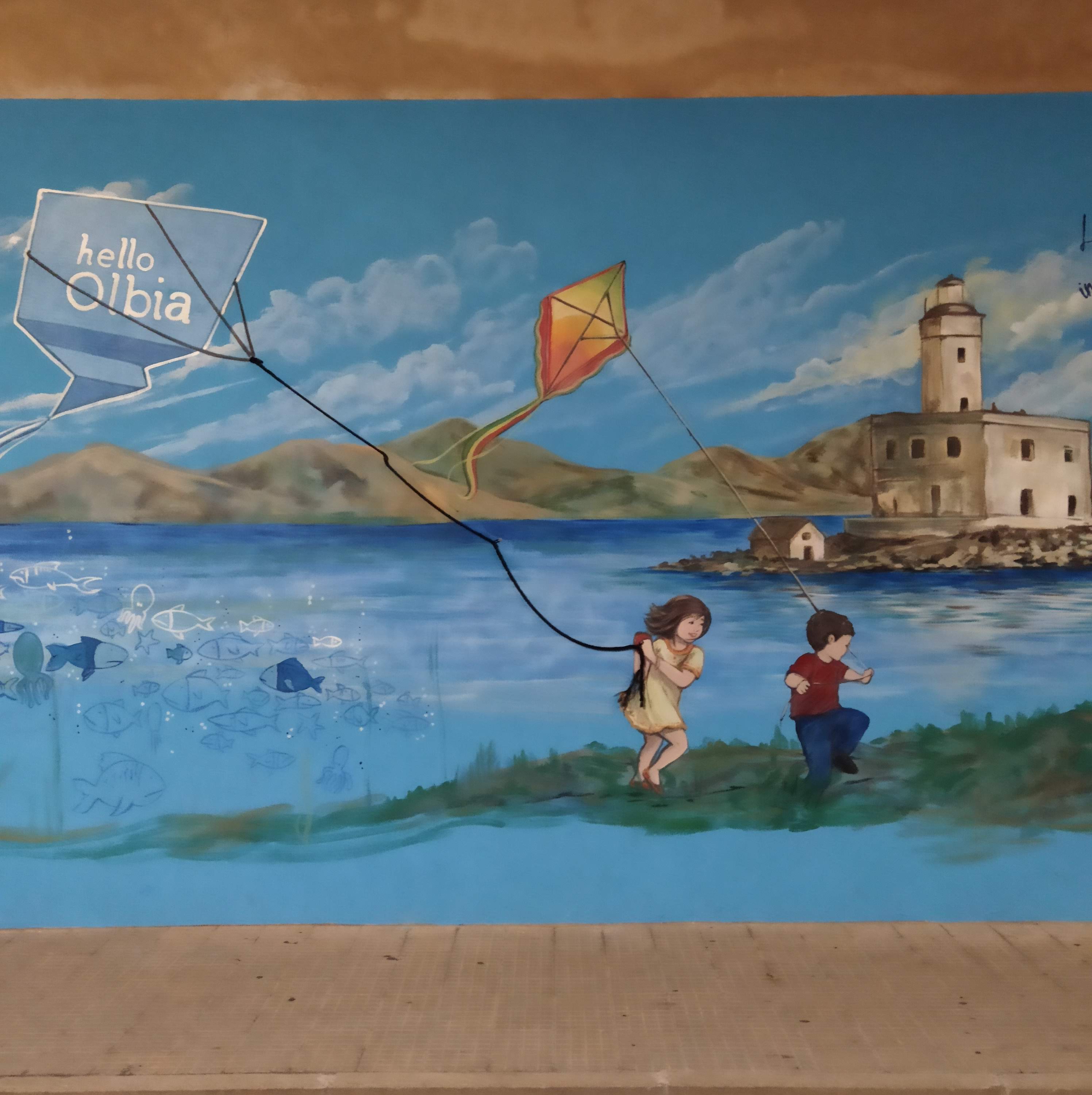 Si spiega così il bel murales di Alessandra Tortone, realizzato in collaborazione con Hello Olbia, in cui vediamo il faro di Olbia, la costa, il mare e due bimbi che tirano l’aquilone. Un bel biglietto da visita per la città, che piace sia ai grandi che ai piccini (non per niente è l’immagine di copertina di questo post, ed è molto instagrammabile, tra l’altro!).