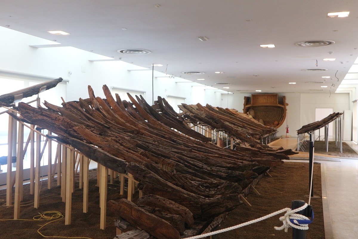 Ma la sezione più importante, e decisamente d’impatto, si trova all’inizio del percorso museale: una grande sala nella quale sono ricostruite le fiancate di due navi tra quelle affondate nel 450 d.C. dai Vandali nel porto di Olbia. Il fasciame in legno è stato recuperato, restaurato e stabilizzato pezzo per pezzo, quindi risistemato al suo posto a formare la chiglia e musealizzato in una sala climatizzata appositamente per mantenere le adeguate condizioni di temperatura e umidità costanti. Entrare nella sala delle navi lascia davvero senza fiato: i legni sono imponenti, inoltre sono esposti anche un pennone e un timone, recuperati e riconosciuti in mezzo al fasciame durante lo scavo subacqueo eccezionale che ha portato le navi di Olbia alla luce. In museo, tra l’altro, è esposto anche il vasellame in dotazione di bordo che reca le tracce dell’incendio che dovette divampare sulle navi assaltate dai Vandali. Possiamo solo immaginare, attraverso questi oggetti, la devastazione che quell’evento comportò.