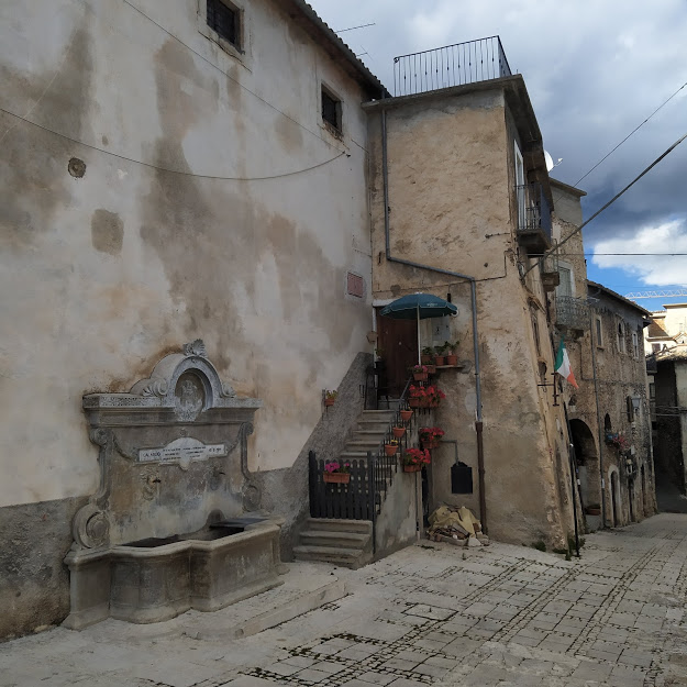 Borgo di Calascio: la fontana sul fianco della chiesa parrocchiale di San Nicola
