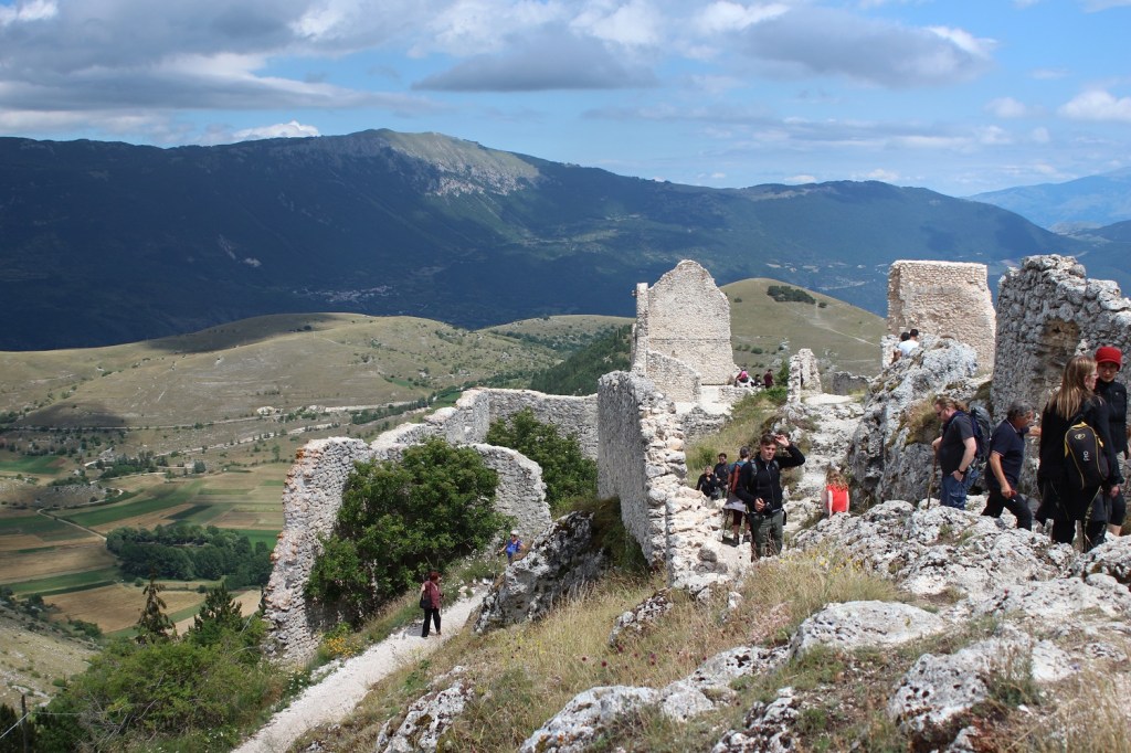 Suggestione del film a parte (chiunque di noi donnine non vorrebbe essere Isabeau e aspettare l’amato Etienne Navarre ogni sera? E viceversa? Cioè, questo film è la ballata dell’amore vero! Vabbè, la smetto…) la Rocca è magnifica. La vista da qui spazia a 360 ° sul territorio montagnoso dell’Appennino, sul Gran Sasso; siamo davvero a un passo dal cielo, l’aria è pura e limpida, il luogo maestoso e suggestivo. Io personalmente mi sono avvicinata con timore reverenziale, perché tanta era l’aspettativa, assolutamente non disattesa, che temevo di non riuscirne a cogliere appieno la bellezza. Invece è stata un’esperienza maestosa sotto tutti i punti di vista: quello dell’esperienza outdoor della camminata, quello storico/culturale del castello medievale, quello fotografico della meraviglia di immagini che il luogo suggerisce. Inoltre, ribadisco, l’esperienza è totalmente gratuita: non so se sia un bene, sinceramente, ma finché è così, questa è una delle esperienze decisamente low cost dell’Abruzzo che consiglio caldamente di fare.