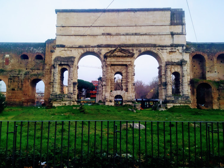 Porta Maggiore vista dal Tram 3 (tragitto di ritorno, da Valle Giulia a Stazione Trastevere. All’andata passa comunque sul lato opposto)