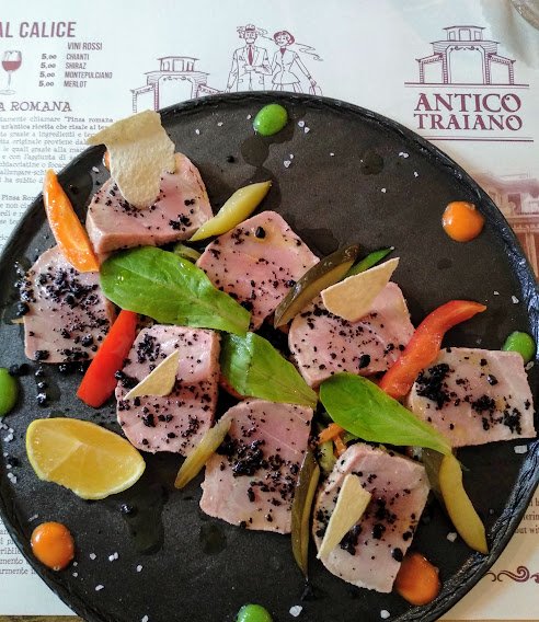 Tradizione e innovazione, fantasia e piacere della tavola: l’Officina Culinaria è il posto in cui non mangerai nessun piatto di pesce tradizionale, ma lo troverai rivisitato e rinnovato. Il che per me è decisamente interessante. Gli esiti poi sono notevoli. Ma più ancora dei piatti, io da buona archeologa amo l’arredamento: e quella parete a maiolica che ripropone porzioni varie di mosaici ostiensi è quanto di più bello si possa avere alle spalle mentre si cena.