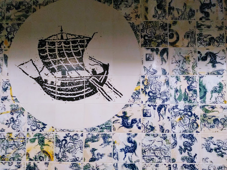 La parete in piastrelle decorate con mosaici ostiensi. Adoro!