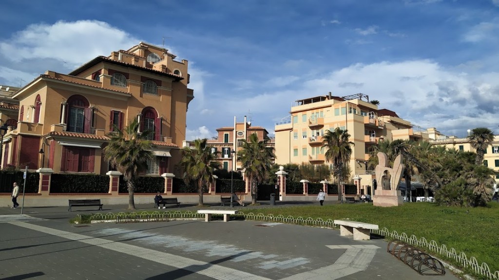 Piazza Anco Marzio è il cuore del centro “storico” se così lo vogliamo chiamare, o dello struscio, per essere più onesti. La piazza è un grande spazio con aiuole chiuso tra palazzi liberty e aperto in direzione del lungomare. Le vie che ad essa conducono, come via Lucio Coilio, sono costellate da edifici anni ’20: se invece che guardare le vetrine dei negozi di abbigliamento o i menù dei ristoranti solleviamo lo guardo, vedremo eleganti architetture, palazzi dalle silhouette davvero particolari: impossibile non notarle. Alcuni palazzi hanno vere e proprie decorazioni sulla facciata, ad imitazione dei mosaici di Ostia antica. L’influenza dell’antico è molto presente e si incontra da più parti. Anche gli stessi nomi delle vie non lasciano adito a dubbi: Anco Marzio è il 4° re di Roma che secondo la leggenda fondò Ostia antica (in realtà non è mai stato dimostrato). Su piazza Anco Marzio affaccia un locale storico, il Bar Sisto, che ne ha visto di vicende e ne ha serviti di caffè da che esiste.