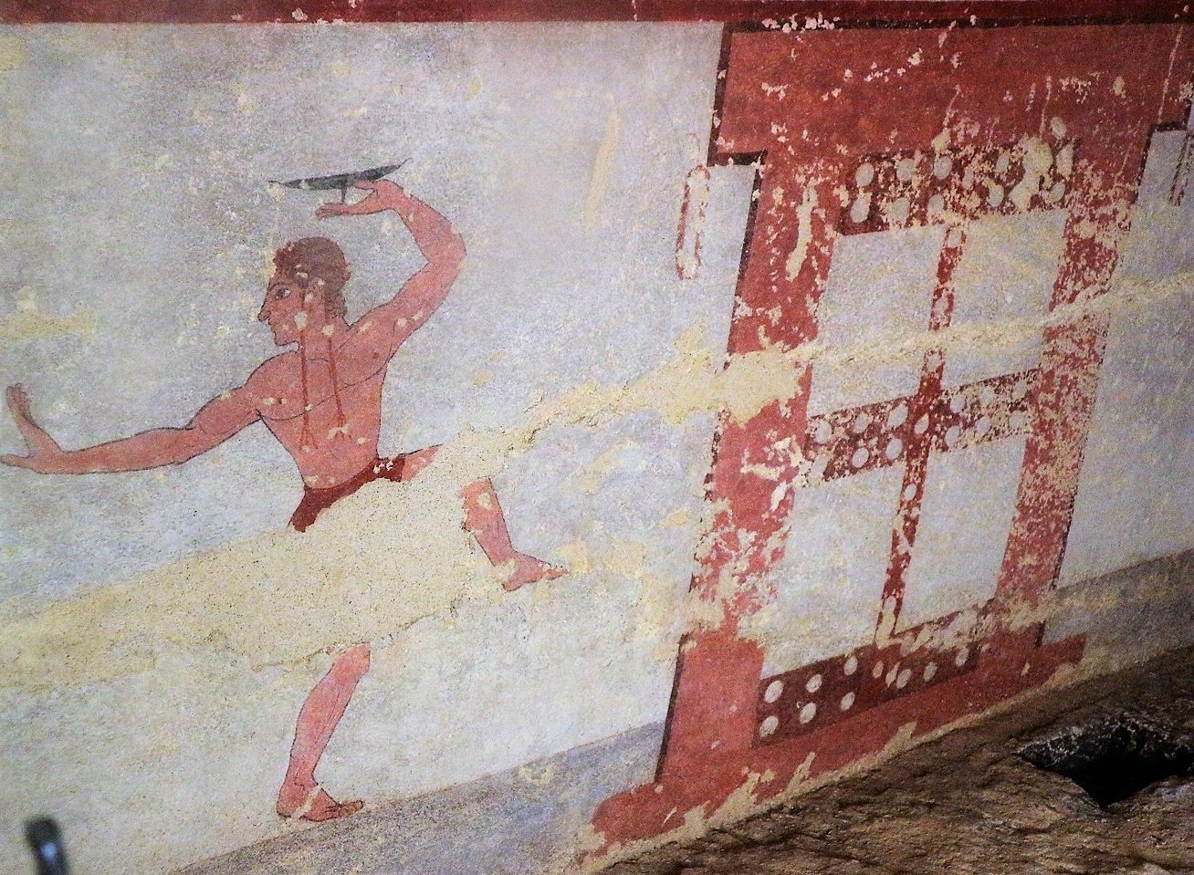 - La tomba Moretti: non è tra le più famose, ma la figura di danzatore raffigurata su uno dei lati della camera è davvero sublime: la muscolatura e i dettagli anatomici del corpo, delle mani e dei piedi gli danno tridimensionalità ed eleganza. Si data al 500-490 a.C. La scena principale vede la defunta, avvolta in ricche vesti, che riceve le attenzioni di un uomo con una coppa e di un suonatore di flauto.