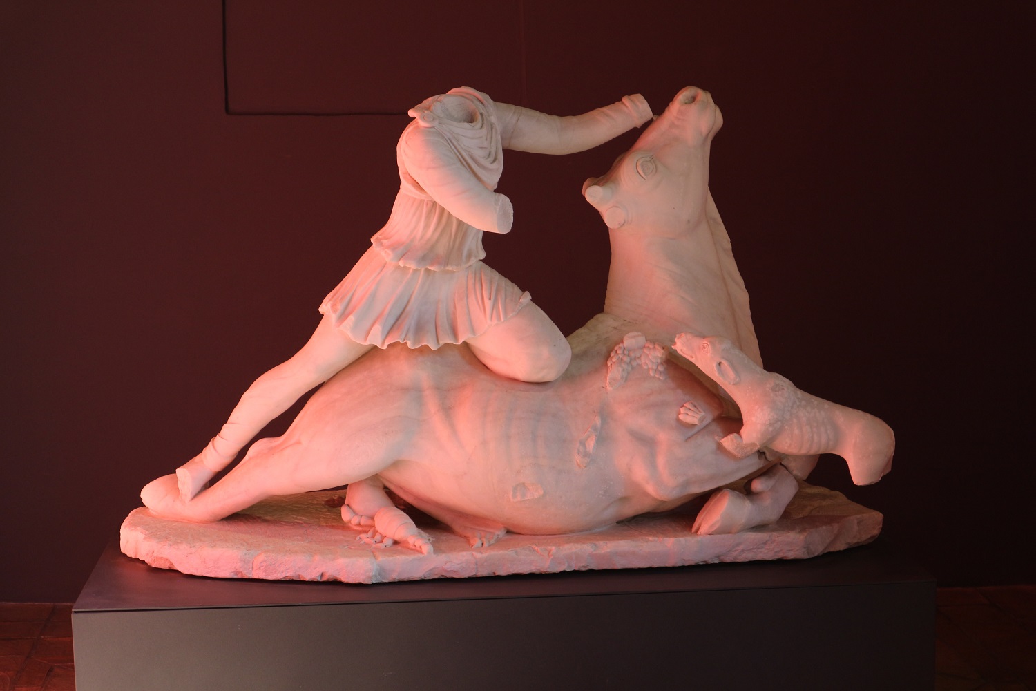 Prima di salire al terzo piano due rinvenimenti davvero di pregio occupano due sale: il gruppo di cavalli che doveva essere posto sul tetto del tempio dell’Ara della Regina di Tarquinia, e una statua del dio Mitra, divinità orientale che ben più tardi dell’età etrusca si impose nel mondo romano. L’importanza di questa statua sta nel fatto che è stata recuperata da un’operazione dei Carabinieri del Nucleo Tutela Patrimonio Culturale nel territorio di Tarquinia. Senza la loro indagine questa straordinaria opera d’arte romana sarebbe oggi in mano di un chissà quale collezionista privato che ci avrebbe privato così di poter fruire pubblicamente di questo capolavoro. La statua di Mitra è l’unica opera non etrusca del Museo, tuttavia è giusto che sia stata esposta qui: un monito e una testimonianza di quanto sia importante vegliare su un patrimonio che, in quanto tale, appartiene a tutti e non a pochi mercanti d’arte e collezionisti senza scrupoli.