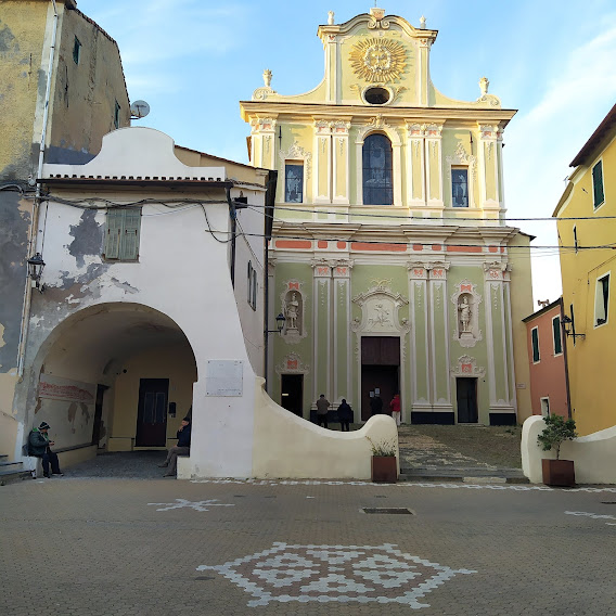 Ma torniamo a Riva Ligure. Il carrugio principale culmina nella piazzetta su cui affaccia la bella chiesa barocca di San Maurizio.