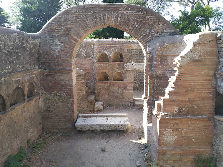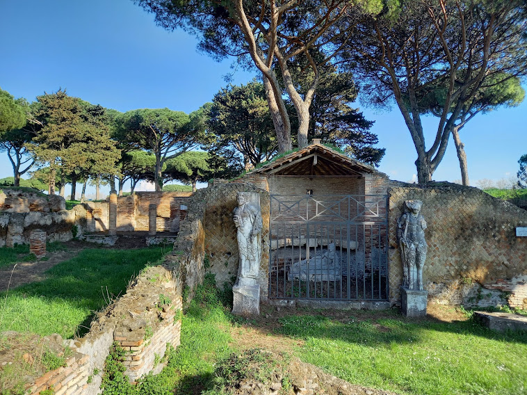 L’ho messa per ultima, ma in realtà la Necropoli della via Ostiense è la prima che si incontra all’ingresso degli scavi di Ostia. Lungo la via Ostiense in prossimità della città di Ostia si sviluppava una necropoli monumentale. Era una prassi consolidata nel mondo romano che le necropoli si sviluppassero lungo le strade in uscita (o entrata) delle città. Ostia non fa eccezione: oltre questa necropoli, un’altra necropoli si collocava sulla via Laurentina subito fuori dalla porta Laurentina e un’altra grande, magnifica necropoli, si collocava a Isola Sacra (Fiumicino) lungo la via Flabia Severiana tra Portus e Ostia.