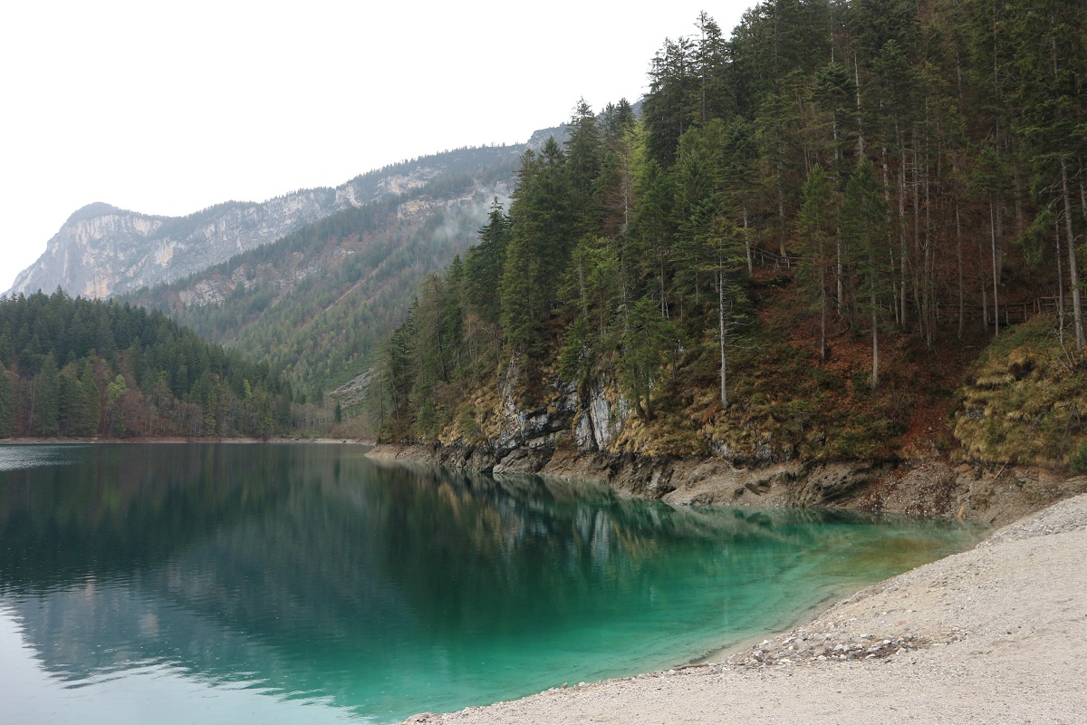 Il Lago di Tovel dalla Spiaggia Bianca, raggiungibile a piedi mediante un sentiero di facile percorribilità