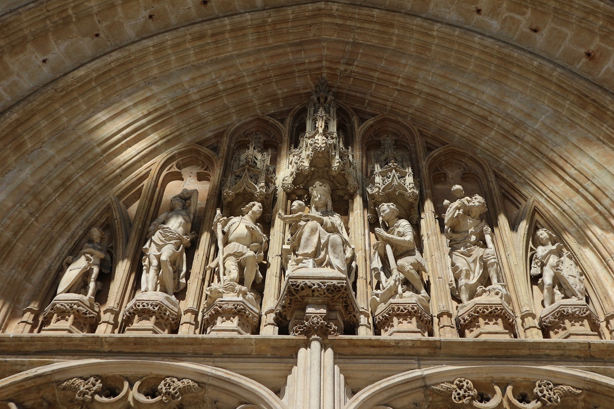 La cattedrale è una grande chiesa gotica del XIII secolo, con le caratteristiche due torri campanarie in facciata, un piccolo frontone con guglie aguzze e le tipiche arcate sopra i portali scolpiti con statue di Santi e colonnine leggerissime. All’interno invece colpiscono le coloratissime vetrate e la chiesa è decisamente luminosa. Al centro della navata centrale si trova un enorme pulpito barocco in legno scolpito con una scena decisamente drammatica: il momento del tradimento di Adamo ed Eva, la quale tiene ancora in mano la mela, mentre un diavolo orripilante li incalza.