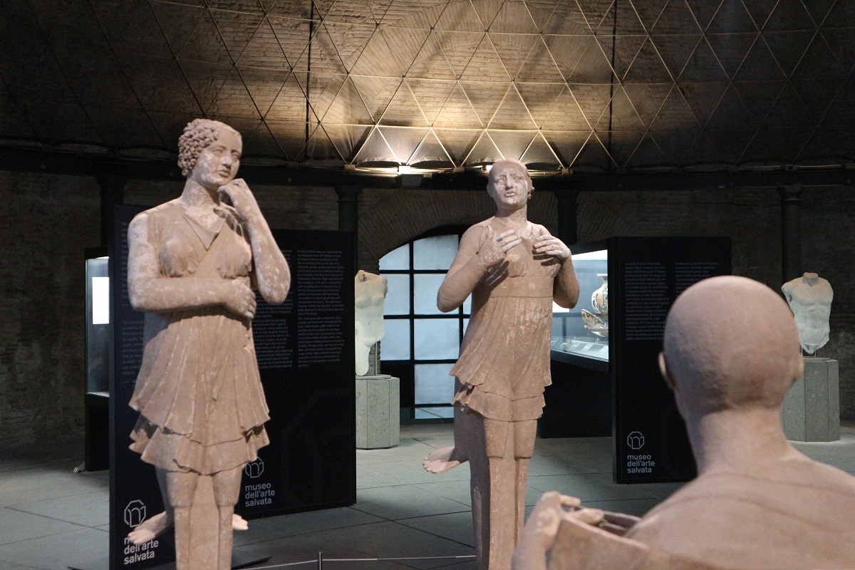 In questa esposizione di reperti ritornati a casa ci sono anche delle opere che non convincono del tutto gli esperti. Degli intrusi, che gettano nuova luce sulle dinamiche del mercato clandestino di antichità: nel desiderio di fare soldi facili si fa credere all’acquirente, evidentemente ignaro, che l’opera che sta acquistando a caro prezzo (e illegalmente) in realtà è un falso realizzato ad arte da artigiani esperti nella riproduzione di opere d’arte antica. Non è così facile riconoscere un’opera contraffatta o del tutto falsa e solo analisi chimiche (che hanno dei costi non indifferenti) sono in grado di dirimere la questione. Al Museo dell’Arte Salvata sono esposte per esempio delle statuette femminili in terracotta dipinta che secondo alcuni sono troppo ben conservate per essere vere. Nel dubbio sono state esposte, ma mettendo nero su bianco che non possiamo sapere se siamo davanti a degli originali oppure no. E questo è un altro problema quando si ha a che fare col mercato clandestino di opere d’arte: non possiamo sapere se siamo davanti a opere autentiche oppure no.