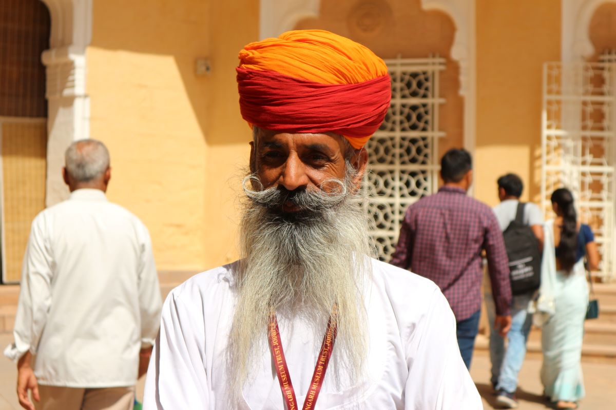 Il forte è un importante esempio di arte e architettura moghul, una commistione di arte islamica con elementi tipici indiani, tipica dell’età dei raja nel Rajasthan. Monumento e museo, per il turista occidentale la visita al Forte è un’occasione oltre che per visitare effettivamente un “Heritage site” anche per vedere da vicino ed eventualmente entrare in contatto con i visitatori interni, cioè indiani. Io per esempio ricorderò la visita al Mehrangar Fort come quella volta in cui ero più incuriosita dalle persone intorno a me, visitatori o custodi che fossero, che non dal monumento in sé o dagli oggetti nelle vetrine. Questo perché i custodi nelle loro divise e con i moustaches (i baffoni tipici) curati erano (sono) semplicemente bellissimi, e anche perché i visitatori, ma soprattutto le visitatrici nei loro sari coloratissimi, sono davvero affascinanti.