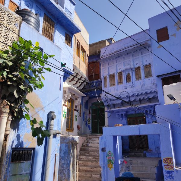 Premessa: se siete turisti occidentali (e lo siete, visto che state leggendo questo blog) e partecipate a un viaggio organizzato o comunque vi affidate a un tour operator anche del posto, nessuno – a meno che non ne facciate richiesta espressamente – vi porterà mai di sua sponte all’interno della città blu, cioè del quartiere, nel cuore della città vecchia, caratterizzato dal colore azzurro delle pareti esterne delle case. Questo perché i tour operator preferiscono farvi vedere la città blu come colpo d’occhio dall’alto dal Mehrangar Fort di giorno, oppure dal rooftop di un ristorante nella città vecchia di Jodhpur la sera. Ma ben altra cosa è invece percorrerne i vicoli stretti e in salita, vedere da vicino quelle pareti azzurre così particolari.