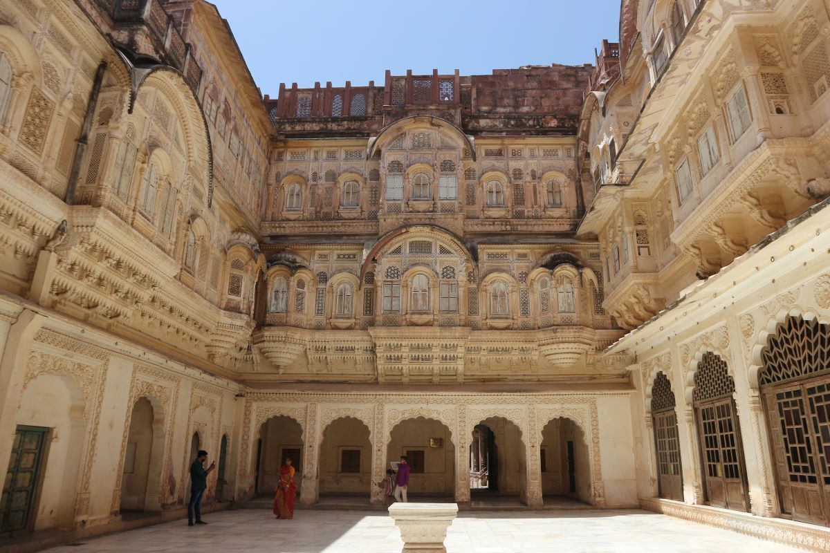 Il Mehrangar Fort ha una serie di sale organizzate come vere e proprie sale da museo: c’è l’armeria reale, nella quale dietro apposite vetrine sono esposte armi e altri oggetti da parata, c’è la sala dedicata ai tessuti e agli abiti cerimoniali, e ci sono poi le sale che sono il vero fiore all’occhiello del palazzo: capolavori dell’arte moghul, in cui lusso, horror vacui e grandissima raffinatezza si fondono. La Sala degli Specchi, la Sala dei Fiori e la Camera da letto sono le tre stanze nelle quali potresti passare giornate intere ad ammirare i dettagli. Ognuna per il suo genere, sono tutte e tre esagerate esternazioni di fasto e lusso, di oro e di gemme, di colori e di luce: tutto per la gloria e la gioia del raja. La più bella è, ovviamente, la camera da letto, sui toni del blu, ma sempre sfarzosissima, overdecorata (si può dire? No, ma avete capito ugualmente) perché nessun centimetro quadrato di parete e di soffitto resti vuoto.